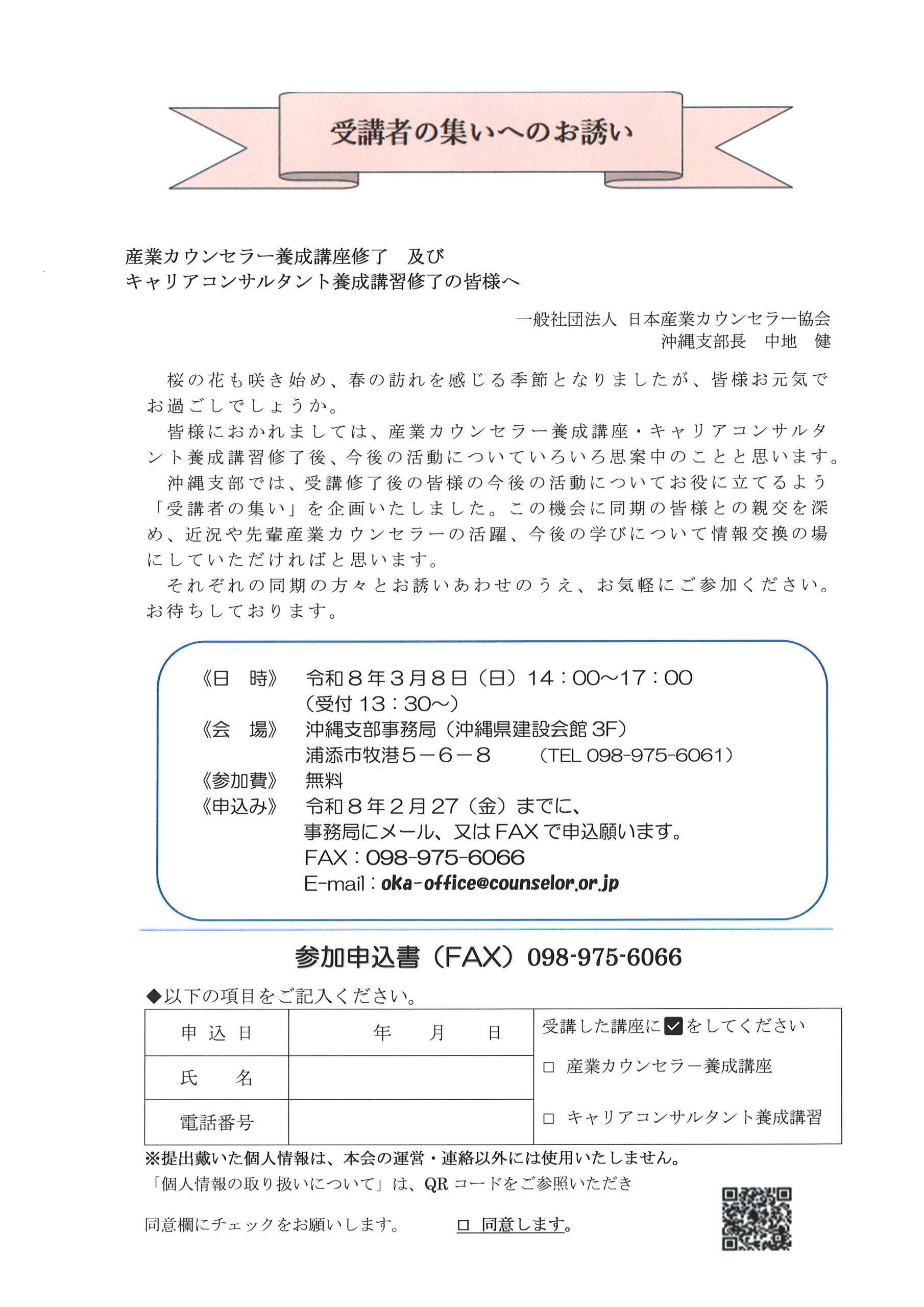 FAXでのお申込みはこちら ☞ 受講者集いへのお誘い